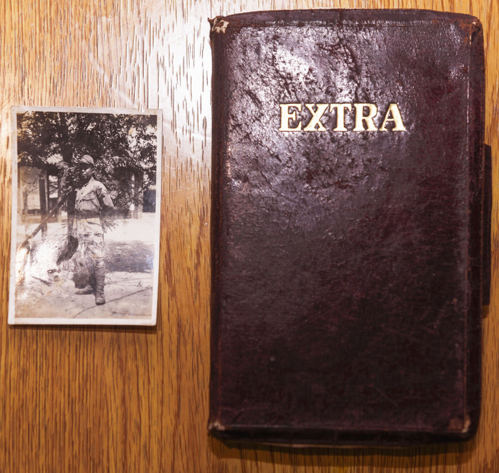 井谷惇一郎照片及其侵华日记封面。(固安县委办公室供图)